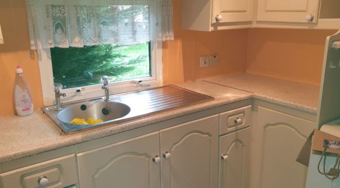 Kann sein, dass ich den Beistelltisch noch in Creme lackiere, damit er besser zum Rest der Küche passt. Leider habe ich keinen in der passenden Farbe finden können…