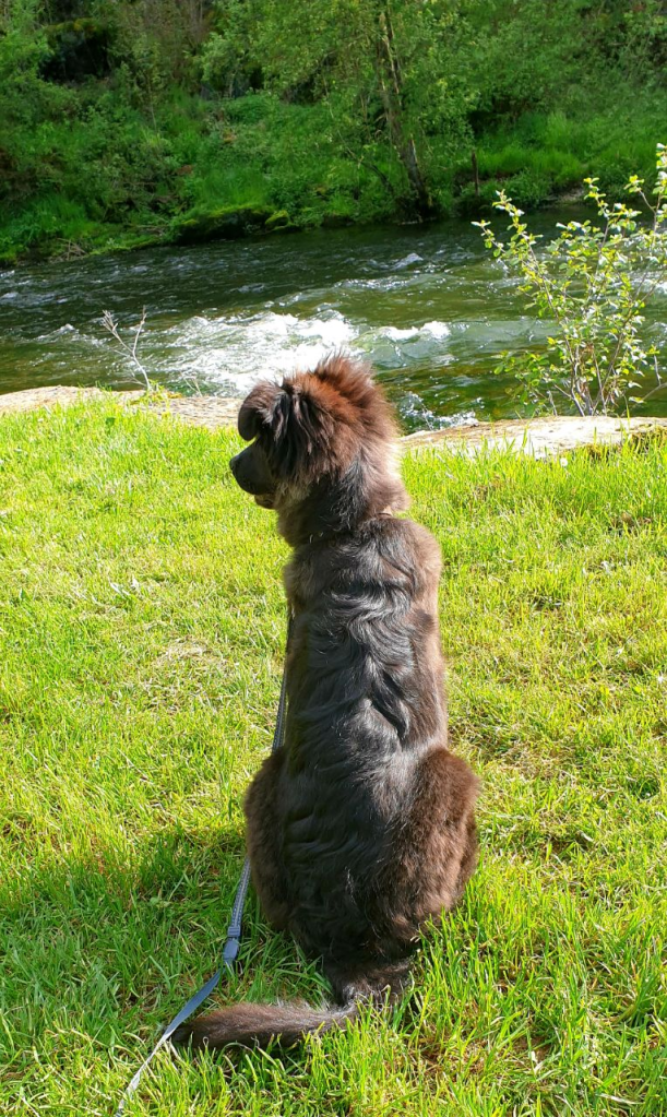 Ich habe gerade die Regenpause genutzt um mit Defender zum Fluss zu gehen …