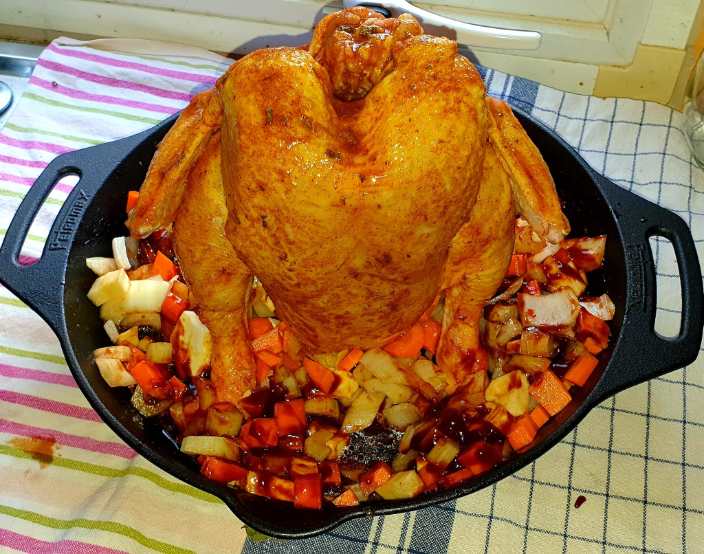 Letzten Dienstag gab es Bierhähnchen bei mir.