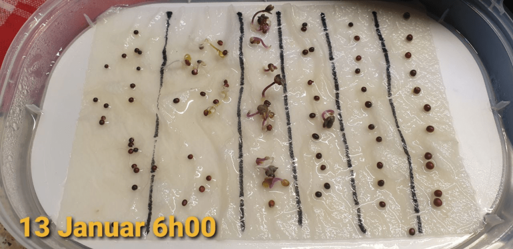 Es geht hierbei nicht darum Pflanzen grosszuziehen, sondern nur darum, um zu schauen, ob sich überhaupt etwas aus diesem Saatgut entwickeln kann.