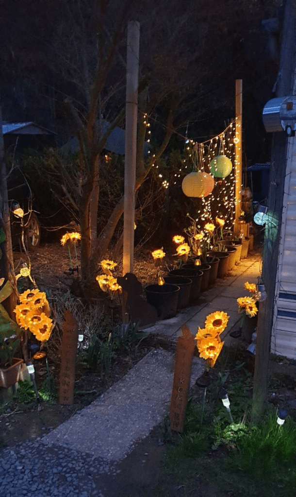Ein Blütenmeer an Solarlampen in Form von Sonnenblumen.