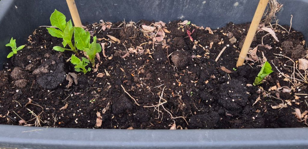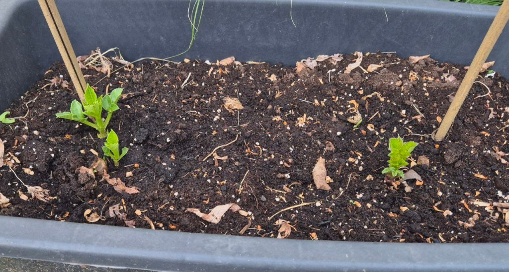 Das erste Grün meiner Dahlien schaut auch schon hervor.