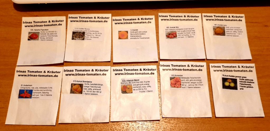 Meine Schwester wünscht sich die Ananas-Tomate. Alleine von der, habe ich bereits drei verschiedene zur Auswahl.