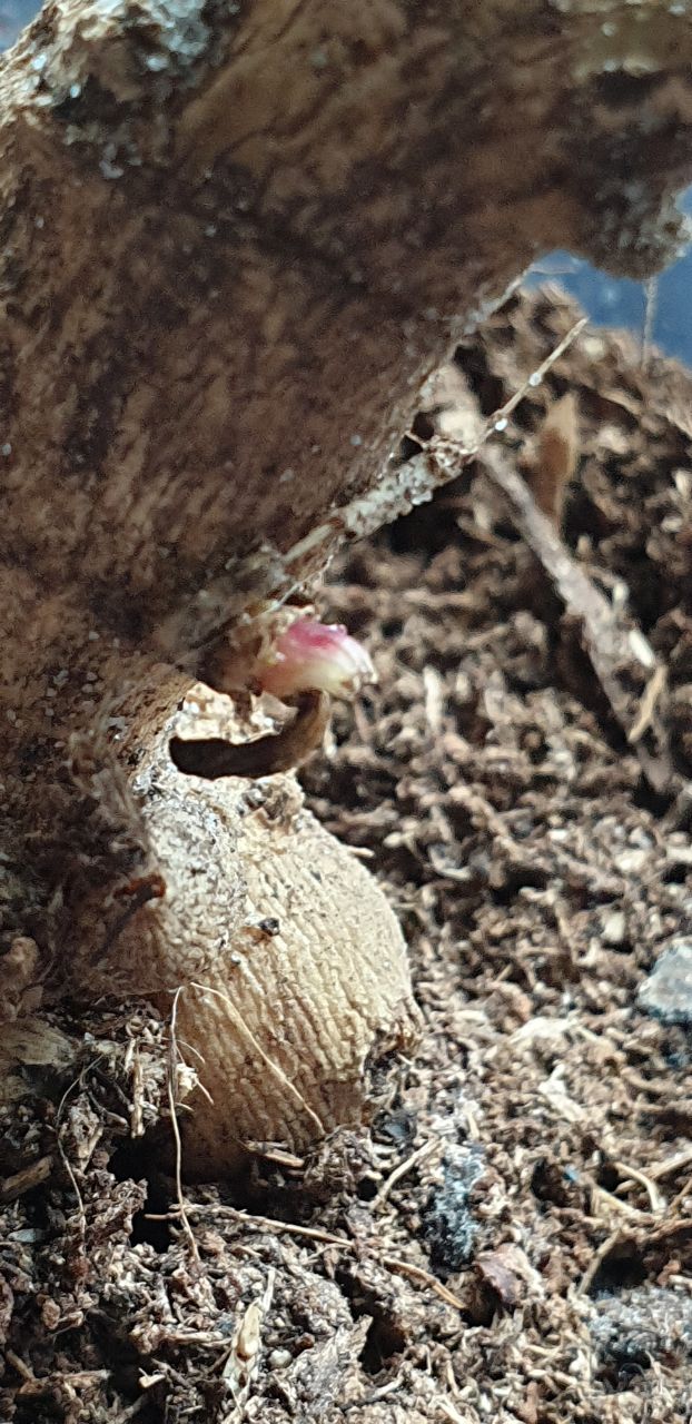 Bei der Dahlie Avignon war ich mir nicht sicher, deshalb warte ich noch bissel, bis ich besser erkennen kann, ob das, was ich als Trieb identifiziert habe, auch wirklich ein Trieb ist.