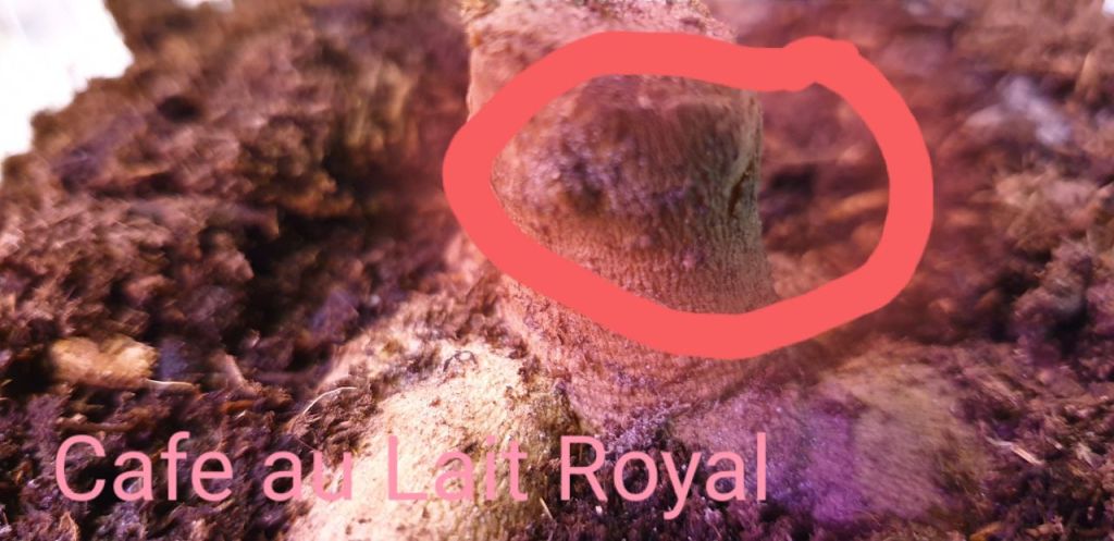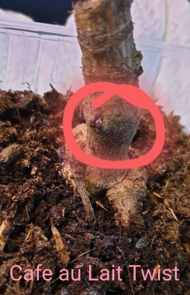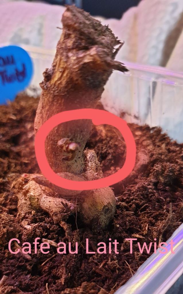 Heute (27.) habe ich den ersten Trieb an der Cafe au Lait Twist entdeckt und am Tag danach (28.) gleich weitere Triebe.