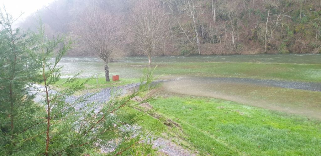 Auch wenn es ein paar Tage gedauert hat, so ist der Fluss endlich in sein Bett zurückgekehrt. Wo vorher noch der Weg unter Wasser stand, kann man nun die Wiese erneut erkennen, auch wenn diese nun mit Schnee bedeckt ist :